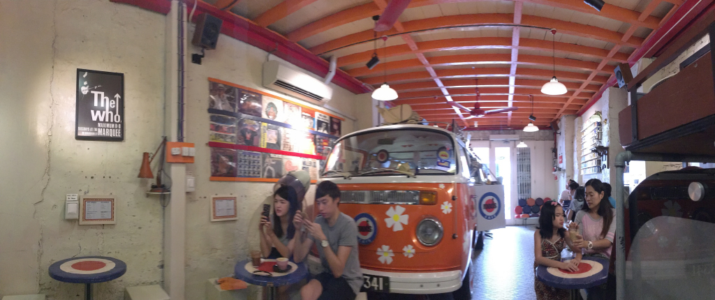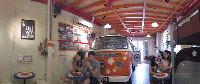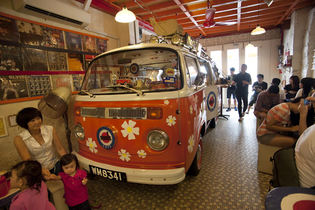 I still remember that when my road trip to Malacca few years ago together with my lady and friends in couple, it was Raya holiday, and during the time the traffic in Malacca town area was highly congested. After we find the carpark near to the Red House Museum, we left the car there and walking into the heritage streets for the whole day street walk, finding foods and photography. After the whole day street walk photography, we came into the street passing by one of the special corner shop with the "Orang Utan" theme wall art, and walking into the street had saw some landmark like the temple and the mosque along the same street. While there was a shop that draw my attention which it has a classic Volkswagen Van well decorated in orange color, placed in the shop, and the van was equipped with the espresso machine!! It was a mobile cafe!