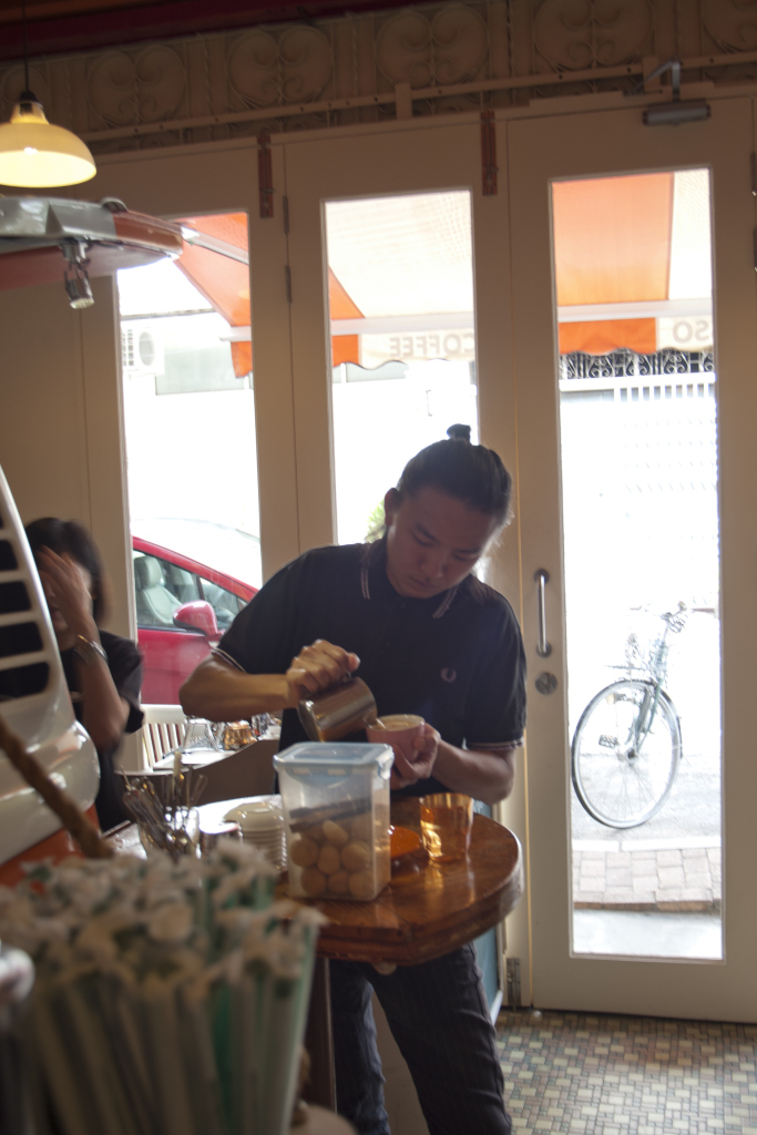 We drop by the cafe to have a bit stop to enjoy coffee time and rest before continue for the street walk photography. Of cause, being first time to the cafe, i would prefer to try their espresso and the cappuccino as the basic way to try out how good is the quality of the barista skill and the coffee they have. It may because of the influence by the barista championship that i used to photograph before, i always observe the process during the barista brewing the coffee, at the same time i would photography the moment when the barista focusing on brewing good coffee with their professional skills. After tasting the coffee, i just feel like refreshed with the drink of the day, it's gourmet coffee that the boss (also the barista) told me the bean they used was their house roasted bean and mostly were light to light medium roasted. May be because of the interest in coffee, after chit chat with the boss, he shares his signature hand brew coffee to us, that was Panama Geisha single origin!!! It was really addicted! Damn! the taste is unforgettable nice!!! Thanks to the boss!!
