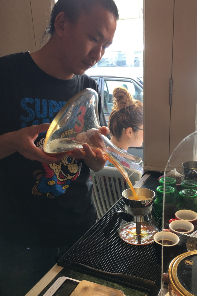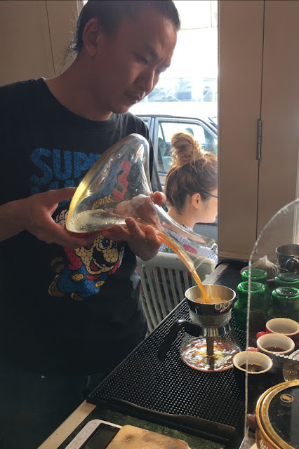 Unfortunately, the Panama Geisha was discontinued selling when me and my lady (my wife) had our 2nd visit to the cafe, but the barista in the cafe surprised us with the "short" brew espresso, and of cause, we were also trying their single origin hand brew coffee. I had my 3rd time visit to Mod's cafe alone recently due to my wife not feeling well and had rest at hotel, and this time the boss also giving me a "Wow!" I was rushing when drop by the cafe to have their hand brew before checking out hotel room during noon time. I was thinking to order for take away, but the boss insist that hand brew coffee cannot be take away, and he advice me to spend a little bit time to enjoy the coffee at the cafe, well i have to agree that. The only choice of hand brew in the cafe only left Ethiopia, and after sitting down a while, the boss brings a wine decanter in front of me and keep on swing the liquid inside the decanter, it's the coffee that he just brewed and seems like to breath the coffee!!! After a while, he just hand over the decanter to let me smell the aroma of the coffee before pouring out to the cup. How creative the way to breath the coffee in order to maximize the aroma of the coffee!!