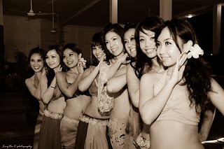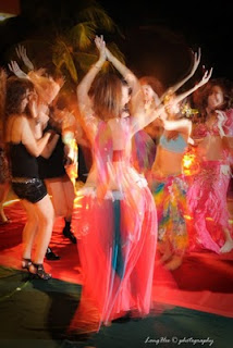 After done the preparation like waiting for my friend to done make up, we traveled to Sg.Petani and met all her partners there to do a final rehearsal at Susan’s studio…during that time, I have a chance to observe and trail some shots regarding the shutter speed setting and the angles to capture the feel of dancing….well, it is still at in door but at least help me to draft some idea for the shooting. By the way, CK (husband of Mee Mee~Vivian’s dancing partner) also was another Nikonian D90 photographer to photograph for his wife…after a short rehearsal, we all heading to Swiss Inn Hotel pool side, there was well decorated with red carpet, flowers and lighting…out door buffet style with music around… the birthday lady, Susan was busy on meeting guests and invite them for seat, well…it is a girly night as out of few photographers, all guest are female…Susan is also a well known dancer teaching belly dance at Sg. Petani, and mostly the guest are her students and dancing partner…