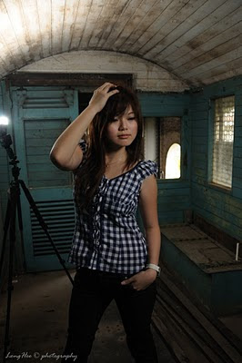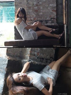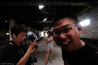 There is a wooden train box abandoned at nearby, and the color on the wooden wall of the train box was light dirty blue, we used what we just learnt from John to set up 2 light source inside the box where 1 as the back light to the over all surrounding, another 1 is the soft box direct to the model’s face, cool…both Wendy and Deanne were pose stunning and high fashion just make use of the limited space inside the box and door of the box as well!!! Of cause we are also not missing out the chance to pose for each others with some crazy and funny pose and make the whole session funny!! At least being photographers also get the chance to pose and being photographed.