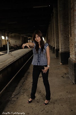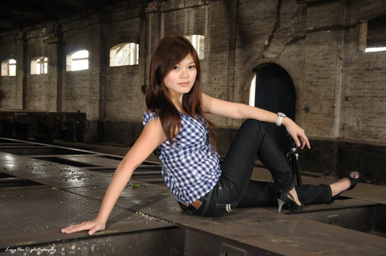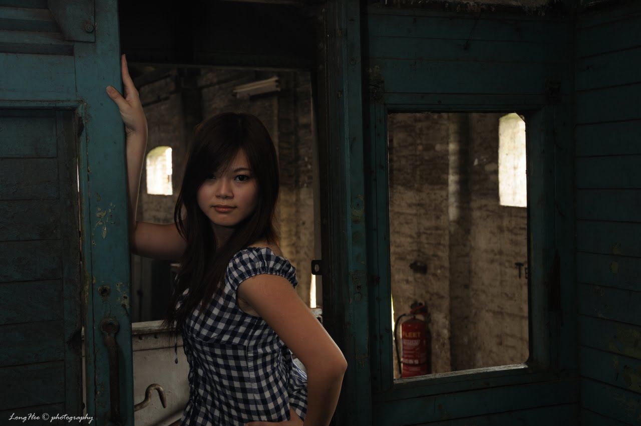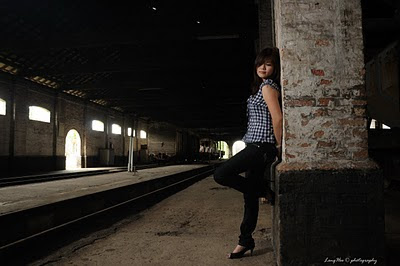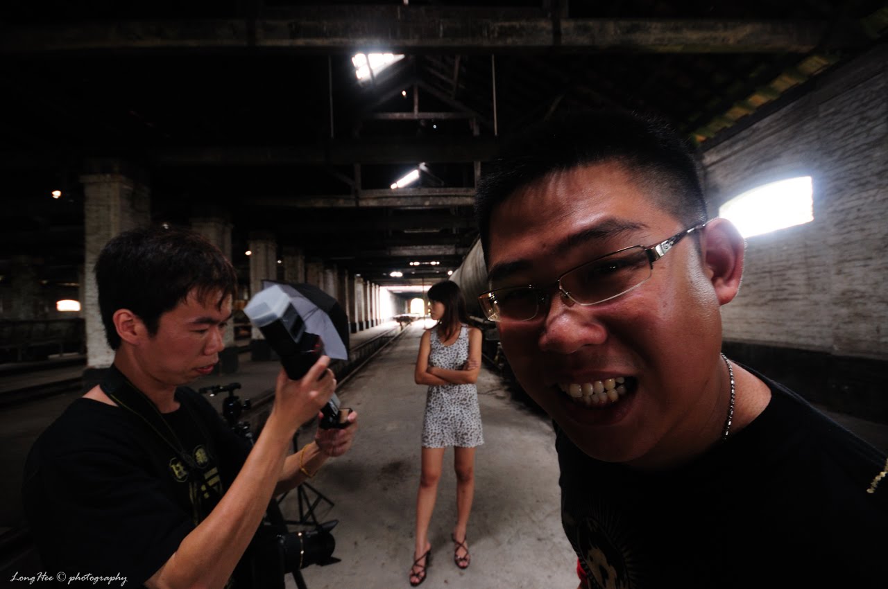 After about 20 minutes driving journey across the Penang Bridge to another “small Penang Bridge”, the railway station is just at below the bridge, there is the place where the train being service and repaired. The place looks dark, the windows and the 2 exists are the light source, the overall place looks quite “emo” and the tone is way to dark tone and mono…for some one will say that this looks dirty, but for me, it is gorgeous!!! The overall background was a great challenge for photo shooting, this is a great chance to learn and try more on the indoor lighting, not like the studio, but the environment quite suitable to bring out the contrast of the subject, the field of depth and the feel of the modern high fashion, that’s why I said “gorgeous”!!!