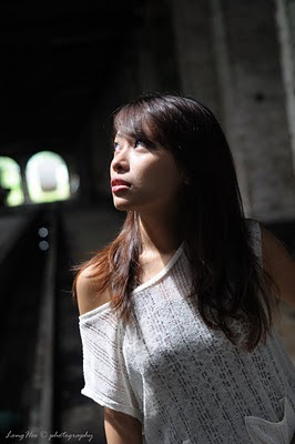 When we reached there, there had another group of photographers are having portraiture shooting with a model, after the model dress up nicely, we started to separate on to 2 sides where some were following Deanne and the others were following Wendy. I got start with Deanne and at first I tried to use the available light source of the place and try to see what kind of setting I able to done with hand held. There is some places where the light was illustrated from the broken roof to create the “spot” light from top, the light was soft and pretty nice for the Low Key lighting with spot metering to created stunning filed of depth…another nice place where I can pose Deanne with some absolute gorgeous is using the back lighting for some open end and she can easily understand and full-fill the pose as what we required, quite professional she is especially she pose on the long wooden chair with the back lighting from the near open end, I did climb up the table to shoot from top so see her laying pose. When I join to have photo shooting with Wendy, John already done some shots with his lighting setup, where he was using the soft box to fill in the soft light, that is great and the tone effect was so so so pretty!!! By the guidance from him, he show me on the camera and the flash gun setting and the position of the flash light source. The soft box can bring up the pretty skin tone in the dark environment, while we combine another flash from me to fill in the light for the environment, the picture looks more dramatic!!! The overall effect is just like what we always see from some fashion magazine (like some jeans commercial), yes! We made it!!! What a great trial I ever have….
