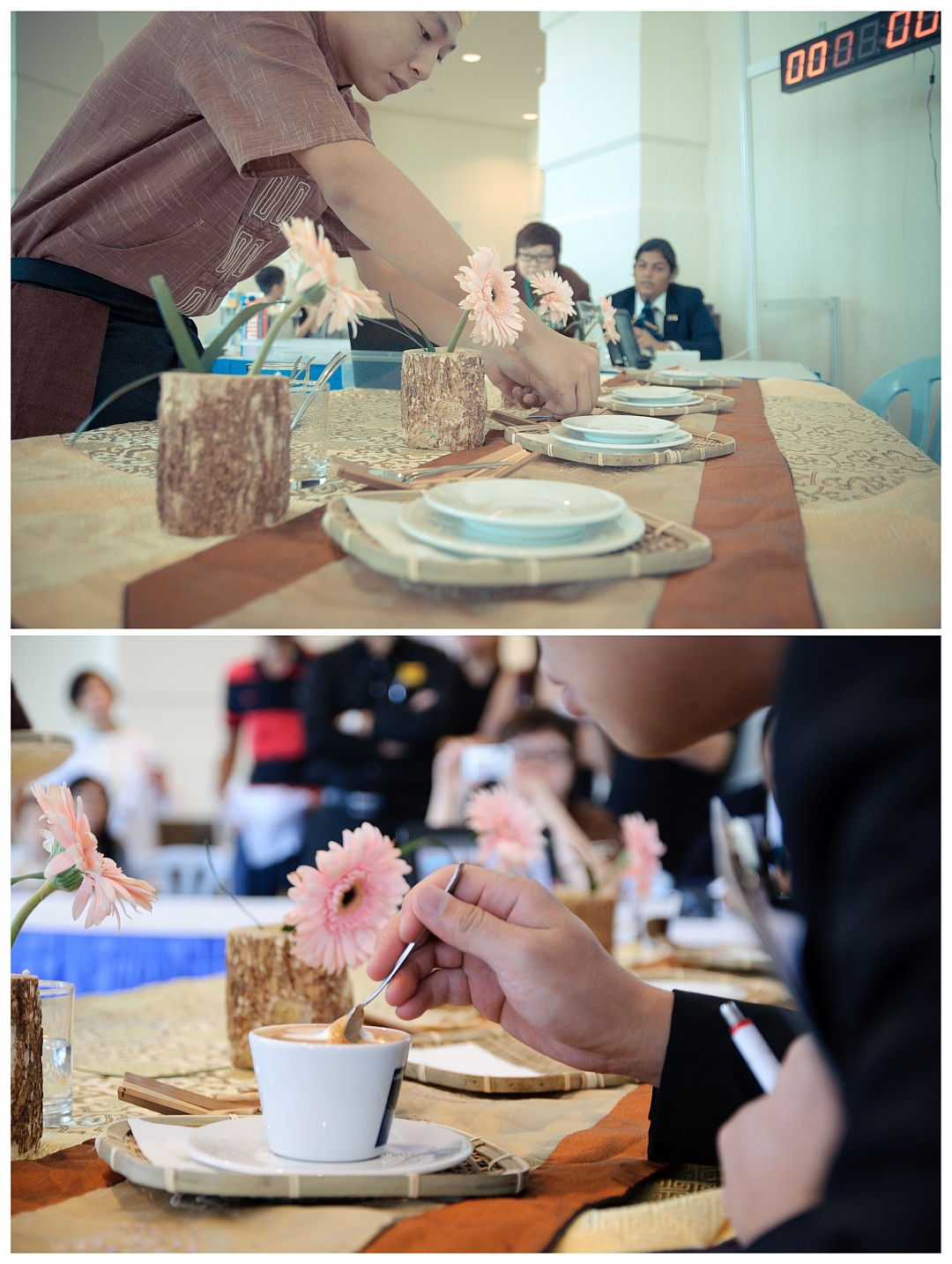 | the table setting...and the way the judge examined the milk form of the cappucino |