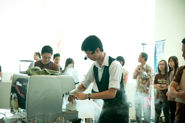 is surrounded by the coffee lovers to come and enjoying the presentation of the