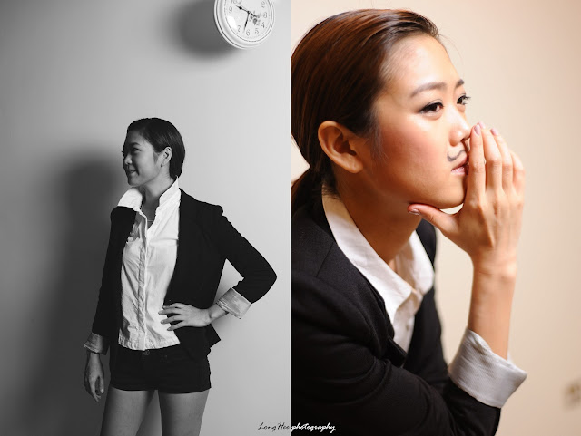 An idea just across the my mind when chatting with Felicia regarding her profile photo on FB where she wear like a tom boy, and she is so excited which this tom boy style is also her favorite, so we just had a try at her apartment where there have a white color background wall at her living room...with a single soft box and remote flash trigger to create the soft indoor DIY studio type portrait...
