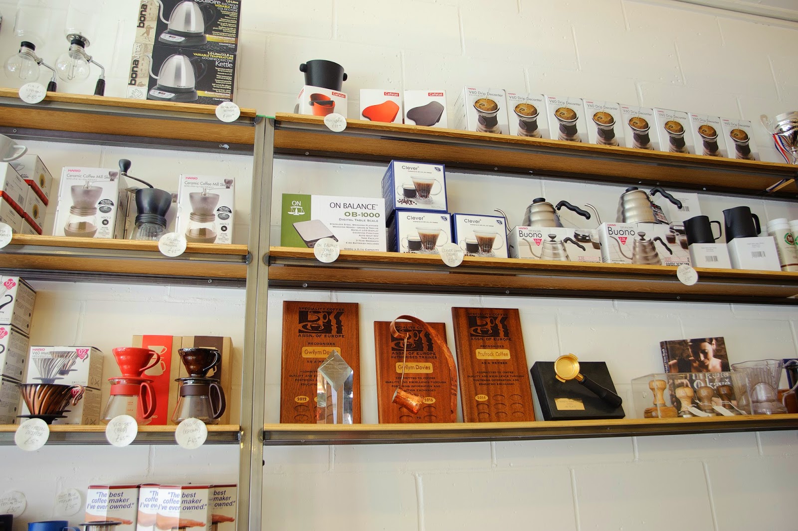 Here's the rack that displaying the hand drip coffee tools and of cause the Recognition of Speciality Coffee of Europe, and also the award winning.