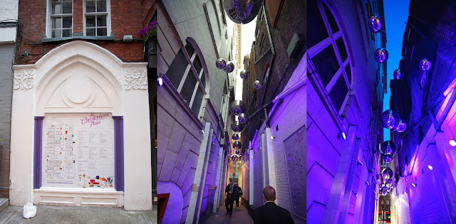 while came near to the H&M and Forever 21 (opposite of the Bond Street tube station), there is a small path in between the building which the decoration was attracting my sigh with some blue and purple color lighting ball hanging at the small entrance of the path.